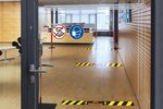"Gardez vos distances" - "Portez une protection respiratoire / buccale" - "Se laver et se désinfecter les mains" - "Ne pas se…